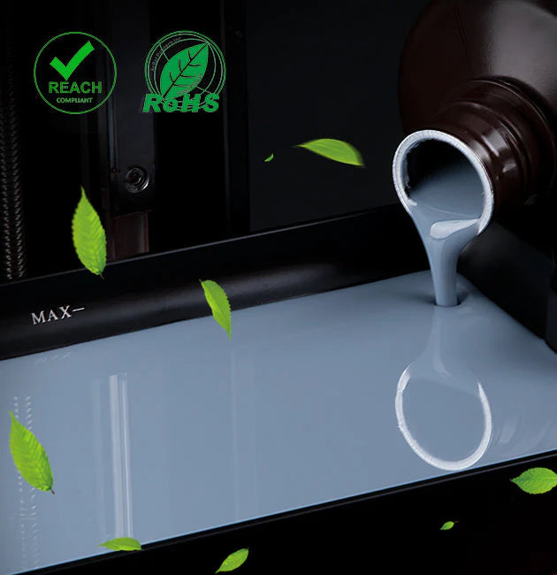 • Low Viscosity and Good Fluidity: With good fluidity, the resin can quickly infiltrate the model and then solidify to shape, improving the success rate of model printing, and reducing resin adhesion to the FEP film. While low viscosity guarantees excellent resin 3D printing performance, easy model removal, and prolongs the life of the release film.